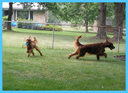 While 12+ year-old Lucy has slowed down considerably, her soon-to-be 5 year-old niece Fancy, (aka "Miss Pants") and 3 year-old nephew Kirby (aka "Mr. Buckets") are still young enough to enjoy galloping around my 10,000 sq. foot backyard in search of balls and squirrels.