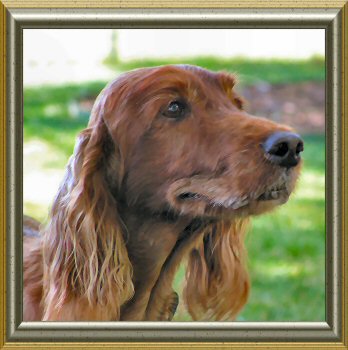Yesterday, November 14, 2008, I said good-bye to my girl, the Irish Setter I'd always dreamed of having. Willful, stubborn and curious, loving, exuberant and loyal -- Lucy was all that and more. Two years ago, at age 13-1/2, Lucy was diagnosed with canine cognitive disease, where every day was one long, excruciating anxiety attack spent trying to find someplace safe to hide. I thought I'd have to say good-bye to my best friend back then but thanks to twice-daily doses of alprazolam Lucy came back to me, a bit calmer than before CCD but still as stuborn and loving as she'd always been. As she approached 15, the arthritis in Lucy's back legs made it more and more difficult for her to stand up or walk and her interest in food started to wane. Oh, how jealous and outraged Kirby and Fancy were as they saw me ply Lucy with one sumptuous meal after another ... beef liver, Bob Evans Beef Stew, Tyson's Roast Pork, braunschweiger on toast, McDonald's cheeseburgers (no condiments!), White Castle "sliders", even cat food ... the list goes on and on. Some days she'd eat with gusto, other days nothing I offerred tempted her. Then a week ago Lucy wandered off the area rug in the kitchen and slipped and fell, hurting the better of her two back legs. After days of watching my girl struggle mightily to get up, struggle to walk without falling but falling more and more often, when no food could tempt her, I knew it was time to let her go, the one last thing I could do for her after she gave me a lifetime of love and loyalty.